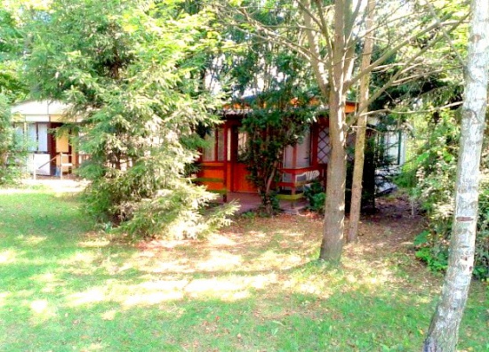 Domek z zadaszonym tarasem o powierzchni 25 m2 - posiada 2 pokoje-sypialnie, kuchnię, łazienkę /prysznic/ i pomieszczenie gospodarcze. Działka położona nad rzeką Wkrą na terenie ośrodka wypoczynkowego.